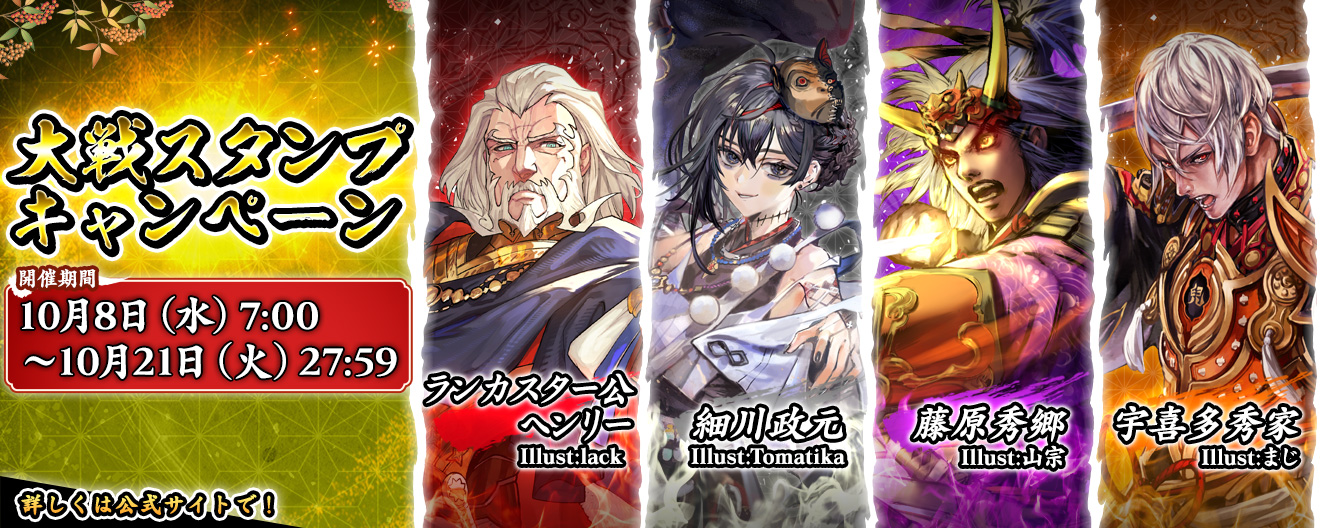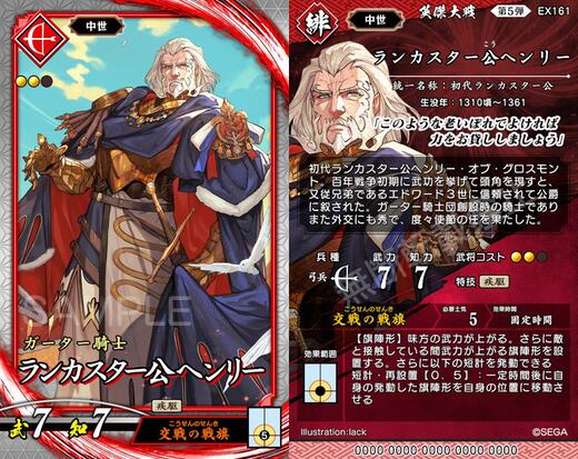 武将「Rランカスター公ヘンリー」「SR細川政元」「SR藤原秀郷」「SR宇喜多秀家」が登場します。