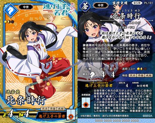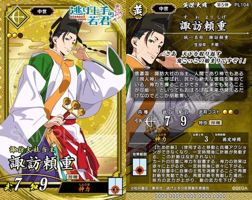 TVアニメ「逃げ上手の若君」より、武将「SR北条時行」「SR弧次郎」「SR亜也子」「SR諏訪頼重」が登場します。