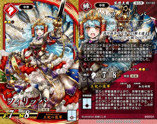 武将「R張悌」「SRフィリッパ」「SR柳生十兵衛」「R公輸盤」「SRガラシャ」「R墨子」「SRヒルデガルト」が登場します。