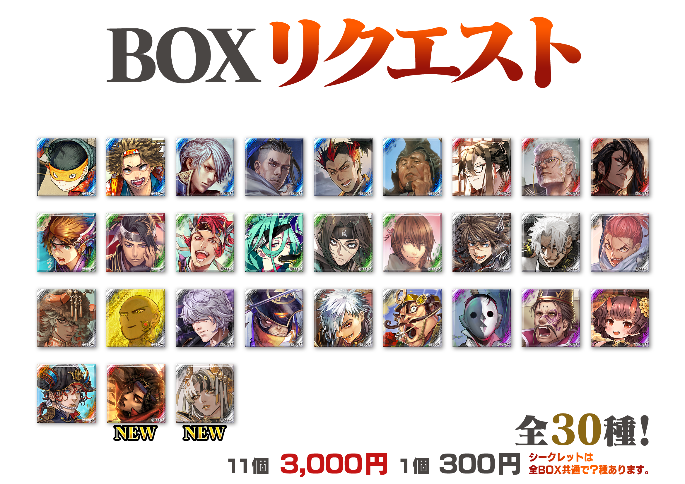 - 缶バッジのシークレットは全ボックス共通となります。