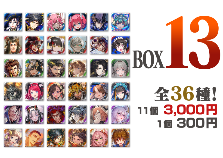 - 第11~13弾、ぷちキャラ第2弾の販売は 英傑大戦 公式全国大会 『天覇傑戦2026』 全国決勝大会を最後に販売終了予定です。(現在在庫分のみ)